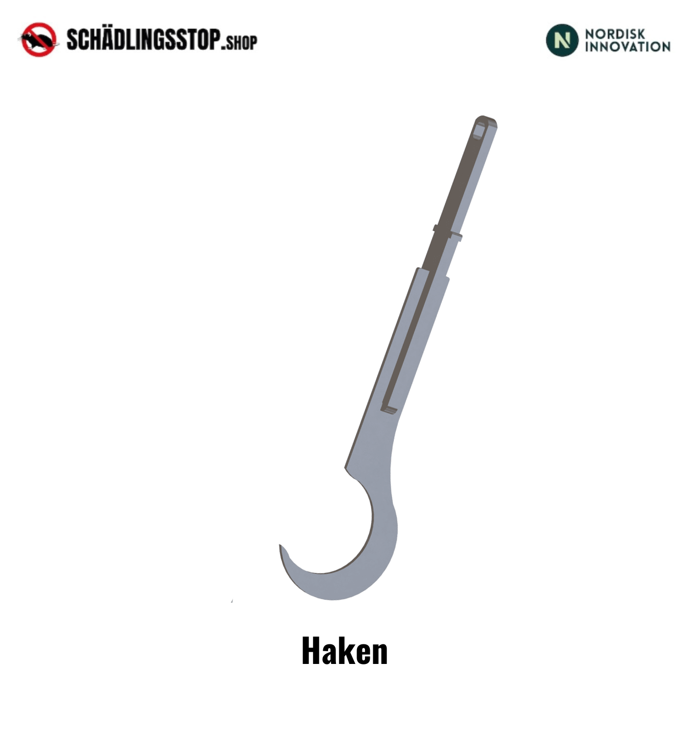 Der Haken von Nordisk Innovation entfernt zuverlässig Feststoffe aus Rattenklappen und sorgt für optimale Funktionalität der Rattensperre. Er wurde speziell für die teleskopische Montagestange von Wolf-Garten entwickelt, die optional eingesetzt werden kann, um auch schwer zugängliche Bereiche bequem und sicher zu erreichen. Ideal für die regelmäßige Reinigung und Wartung von Rattenklappen in Rohrsystemen und Abwasserleitungen.